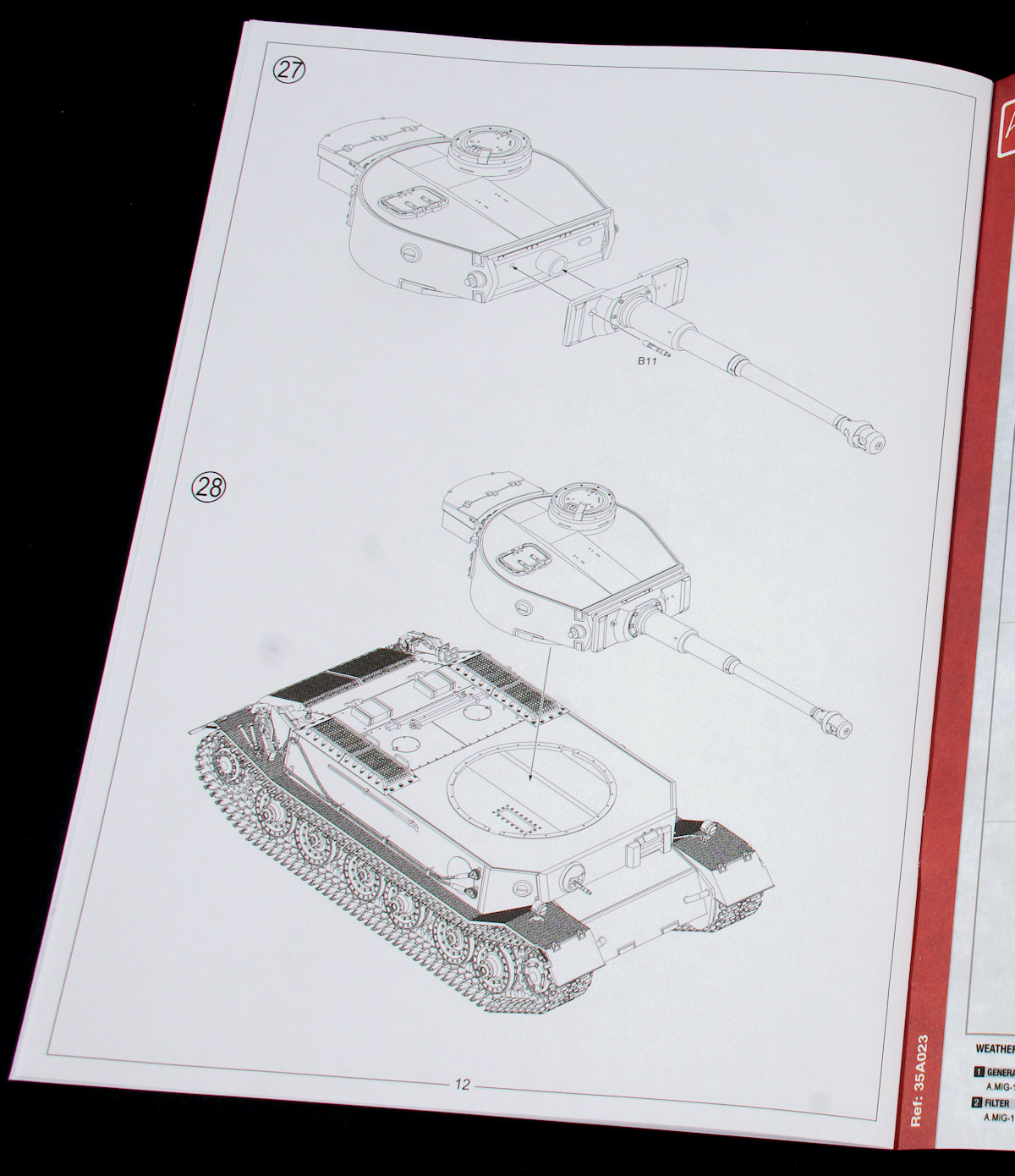 The kit comes in the standard top lifting box, and the contents are surprisingly hard to get back into the box once you take them out despite the relatively lower parts count. It is interesting to note Amusing Hobby¡¯s Truppenubungsfahrzeug designation for this, which translates to Troop Training Vehicle. Only one Tiger (P) ever saw combat with the rest being converted to the Elefant/ Ferdinand tank destroyer, so I¡¯m not quite sure where Amusing Hobby got this designation. We do know from our friend Herbert Ackermans that at least 3 VK 45.01(P) were being used by s.Pz.-Abt. 503 for training at Döllersheim, when they were still earmarked to go to Afrika equipped with the Tiger (P).