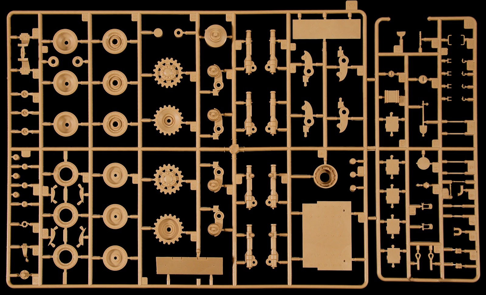 The kit comes in the standard top lifting box, and the contents are surprisingly hard to get back into the box once you take them out despite the relatively lower parts count. It is interesting to note Amusing Hobby¡¯s Truppenubungsfahrzeug designation for this, which translates to Troop Training Vehicle. Only one Tiger (P) ever saw combat with the rest being converted to the Elefant/ Ferdinand tank destroyer, so I¡¯m not quite sure where Amusing Hobby got this designation. We do know from our friend Herbert Ackermans that at least 3 VK 45.01(P) were being used by s.Pz.-Abt. 503 for training at Döllersheim, when they were still earmarked to go to Afrika equipped with the Tiger (P).